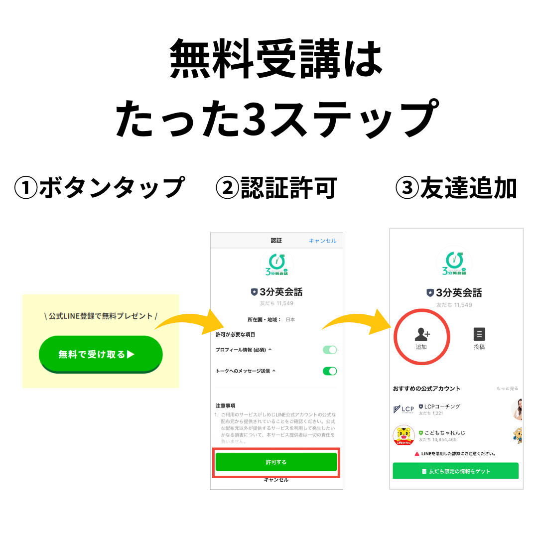 お申し込みが完了すると3分英会話公式LINEより無料講義動画が届きます。